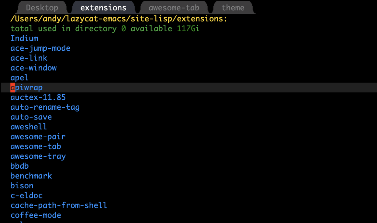 - 然后下载 Awesome-Tab 里面的 awesome-tab.el 放到 ~/elisp 目录