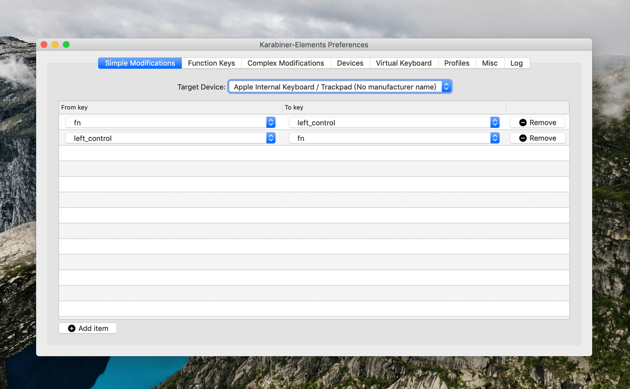 首先把MacBook Pro内置的Fn和Ctrl键交换了,我喜欢左下角就是Ctrl按键的踏实感