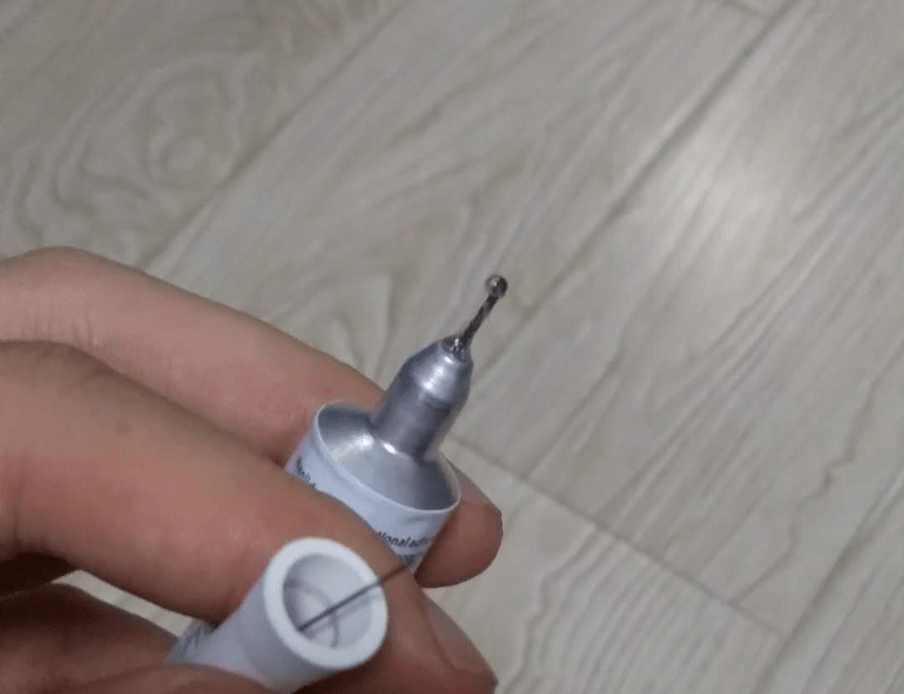 - 出口是针头形状的, 这样可以精确的控制胶水, 保证在薄薄的粘贴底座的同时不能晕染到触点电路上