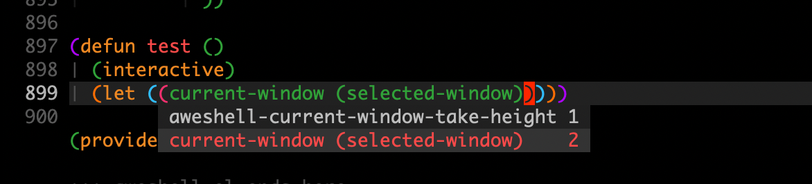上面是我写的Emacs插件aweshell.el,当我敲击 current-window 的时候,TabNine 的补全建议是: