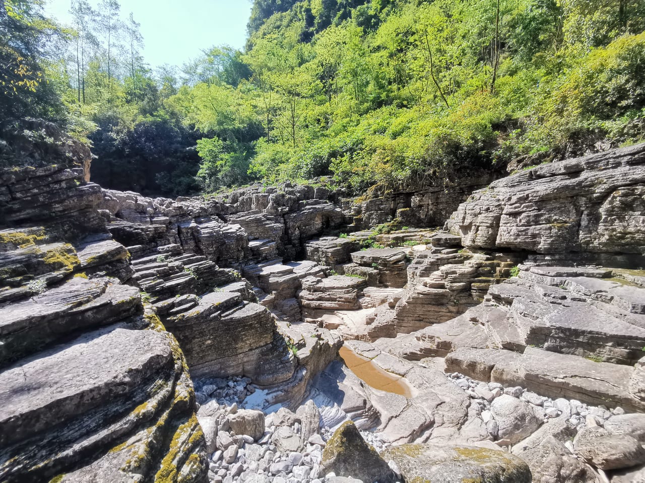 晴天穿越清江古河床的难度只能算徒步入门级, 只需背够食物、 水, 穿长裤即可, 不需要穿专业的登山装备和登山杖。