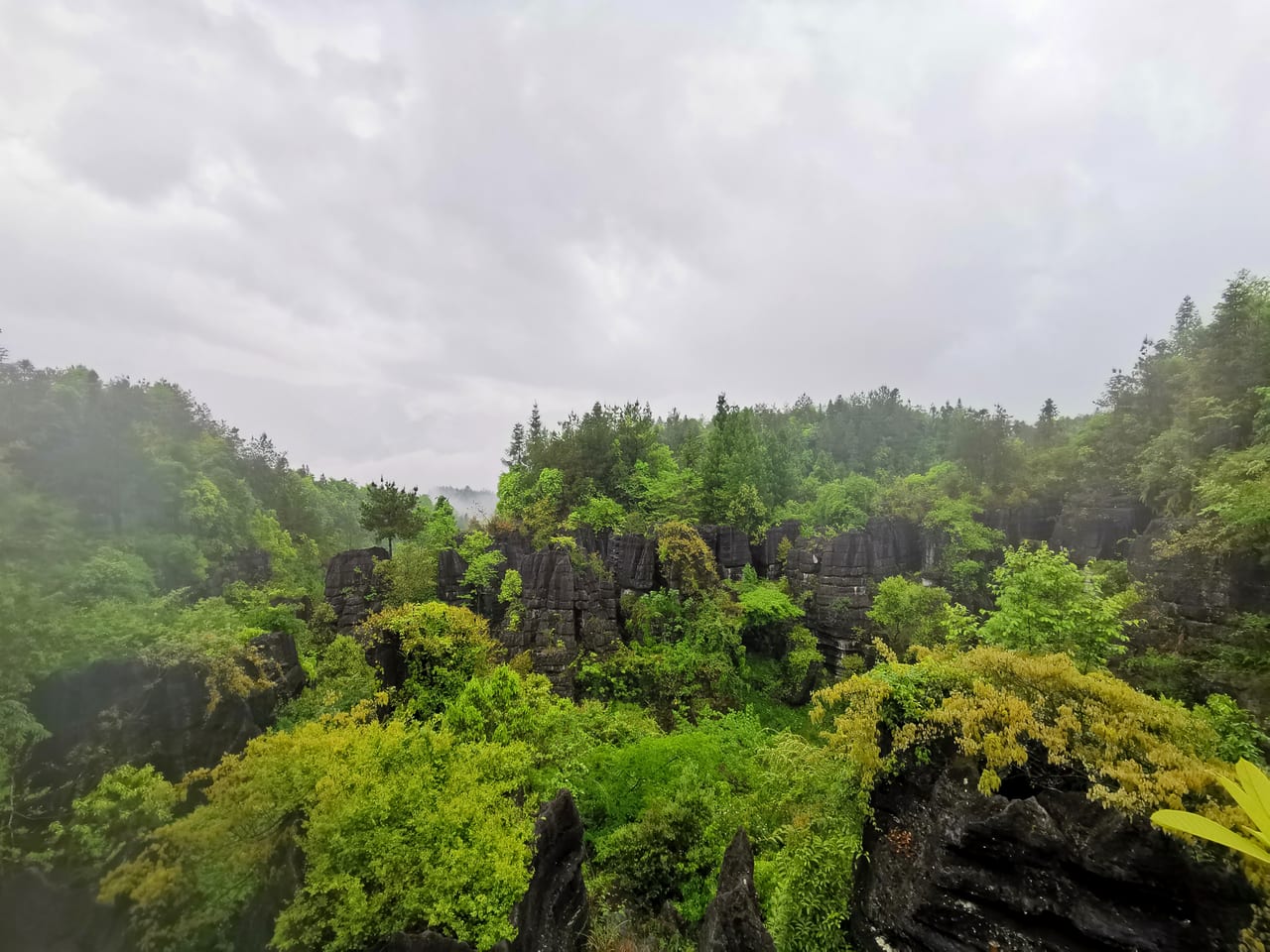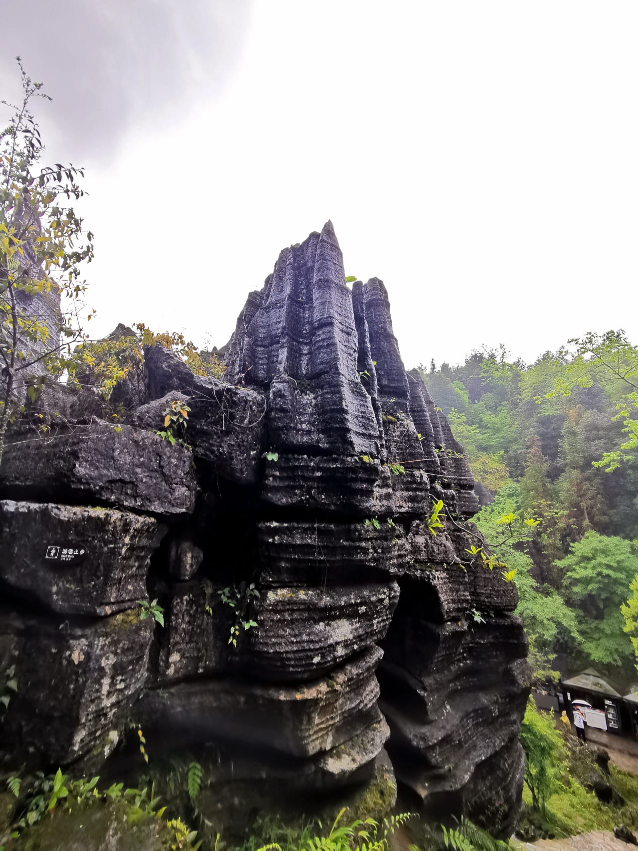 在梭布垭景区的酒店住了一晚, 第二天刚好下雨, 天气不是很完美, 建议晴天一大早进去, 早晨的微光在石林中折射, 石林会呈现出壁纸般的五彩斑斓, 视觉上会更为惊艳。