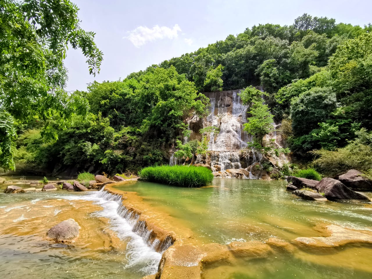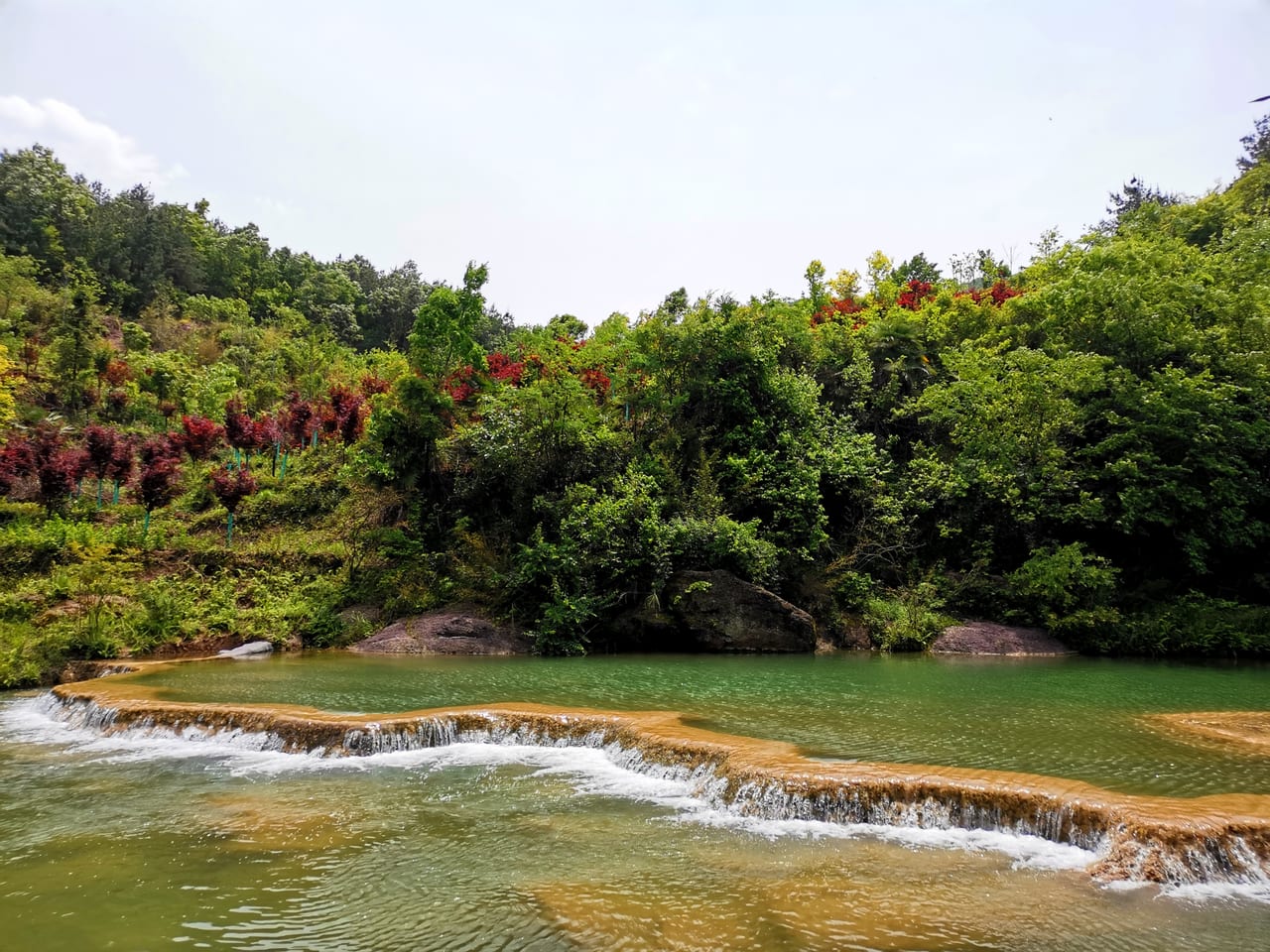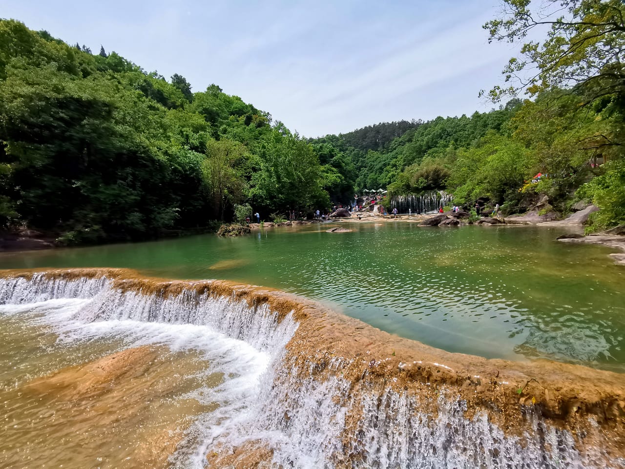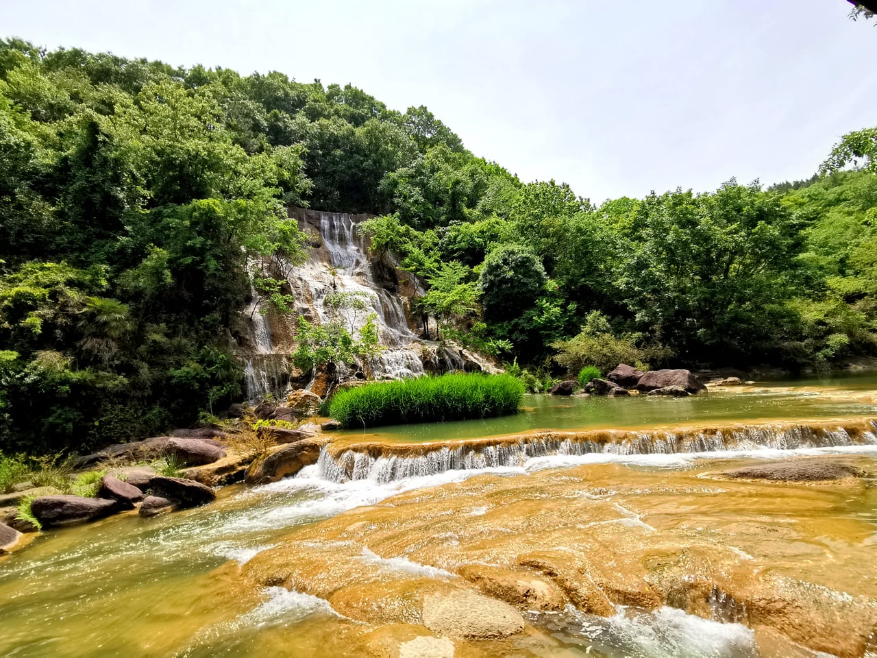 担心五一回程高速堵车, 玩了梭布垭石林以后就往武汉赶, 路过荆门时去了一趟绿林美人谷, 号称”湖北小九寨“, 带小朋友玩玩水还是非常不错的, 景区很小, 全程 1~2 个小时即可走完。