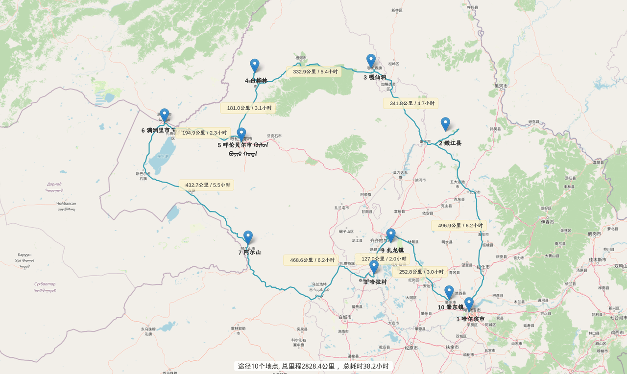 我比较喜欢全世界到处浪, 一般浪之前我都会做详细的攻略, 找出所有可能的旅游景点, 自驾的时候一个刚需就是要知道怎么走最顺路, 这样可以节省大量的时间。 商业地图不管是 Goolge 还是高德地图, 都有一个限制, 超过 20 个地址以后, 这些商业地图就没法做路径自动规划了。 一旦超过 20 个景点, 以前我就需要用两张地图才能规划, 经常在两个地图对坐标或者异动景点位置, 全凭脑袋记坐标。