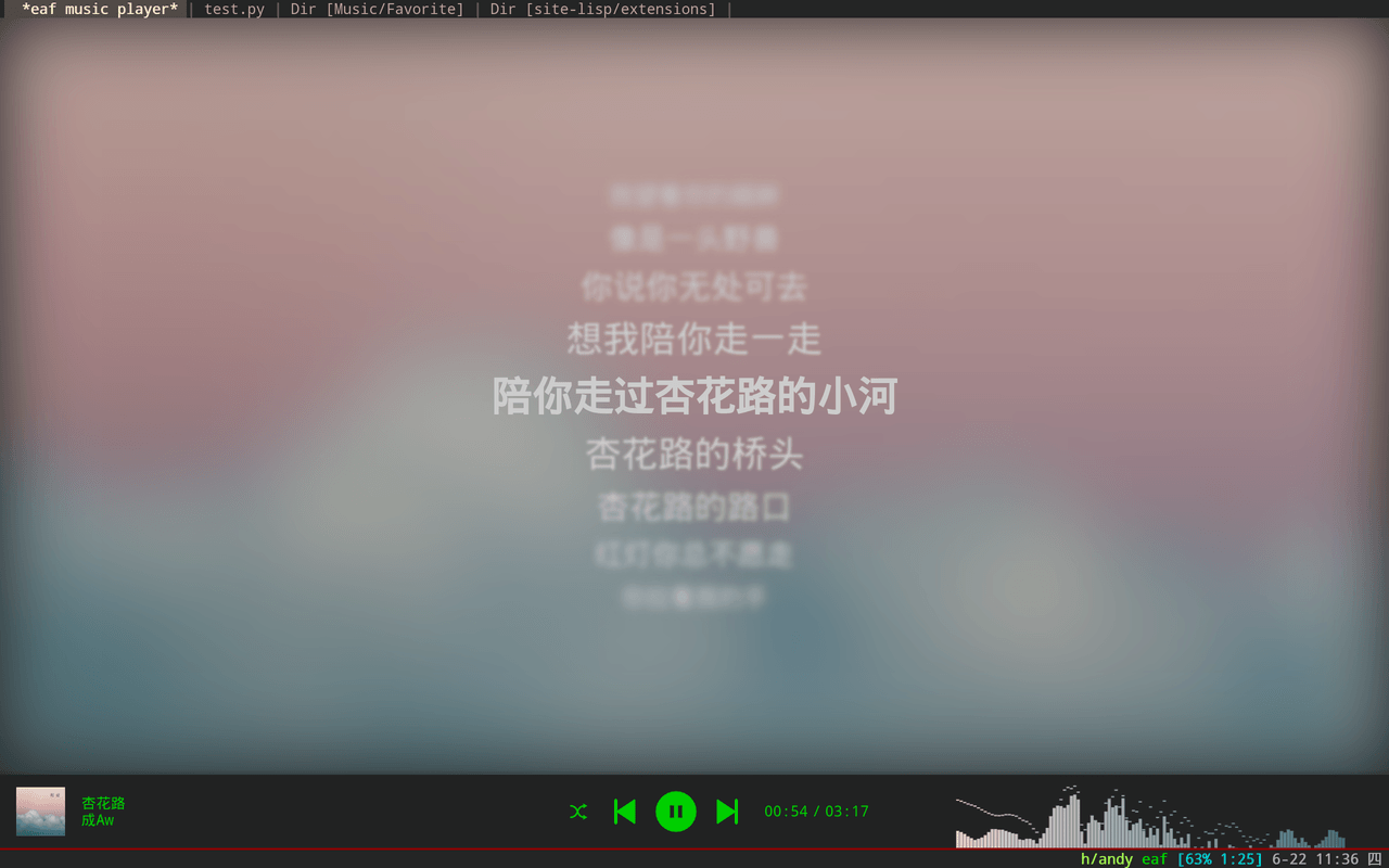 我曾经是 emms.el 插件的重度配置者, 但是实在受不了播放列表多列无法对齐的界面, 强迫症真心忍受不了, 偶尔会按一下 F 键, 像浏览器网页跳转那样来快速切换音乐。