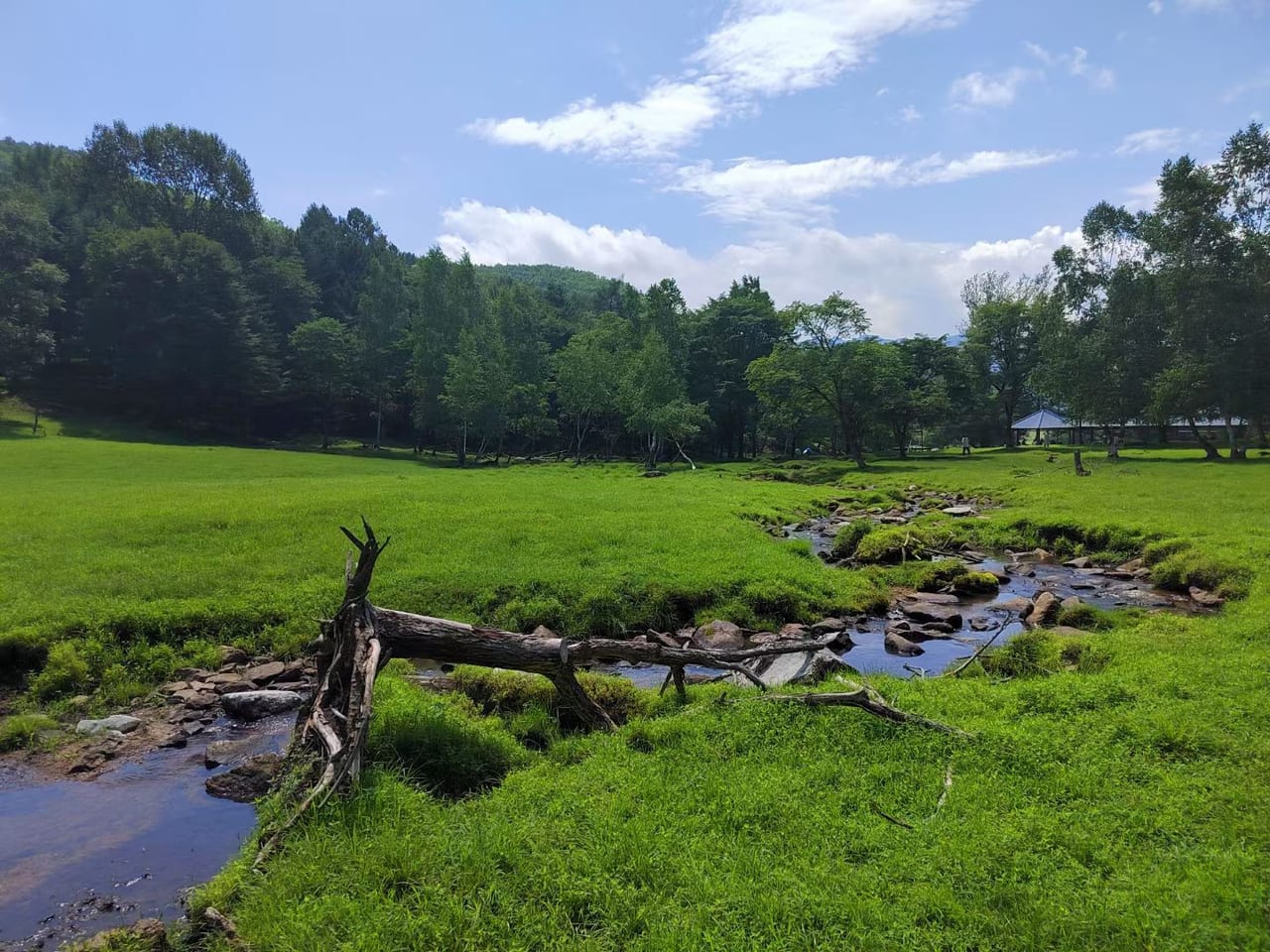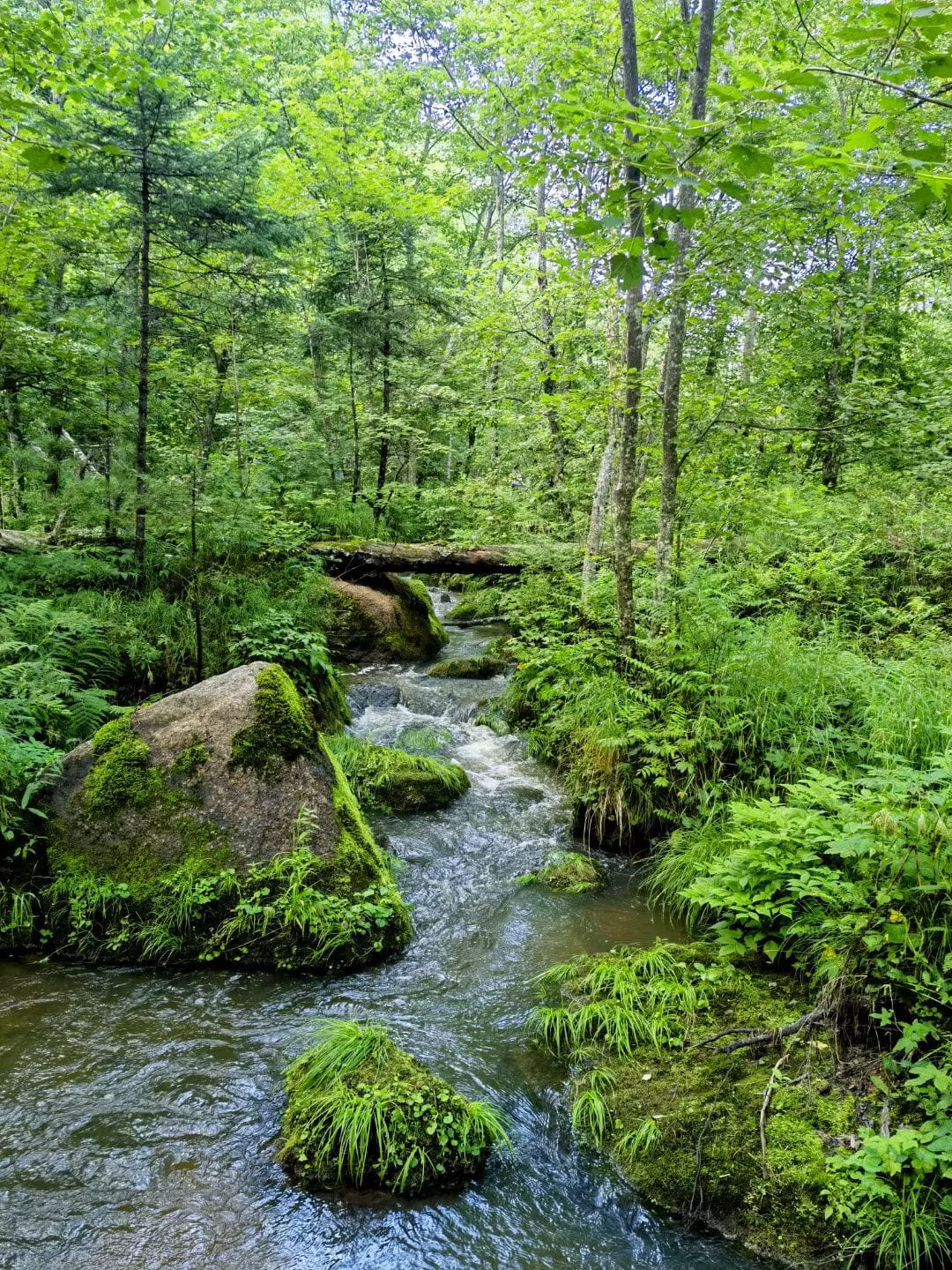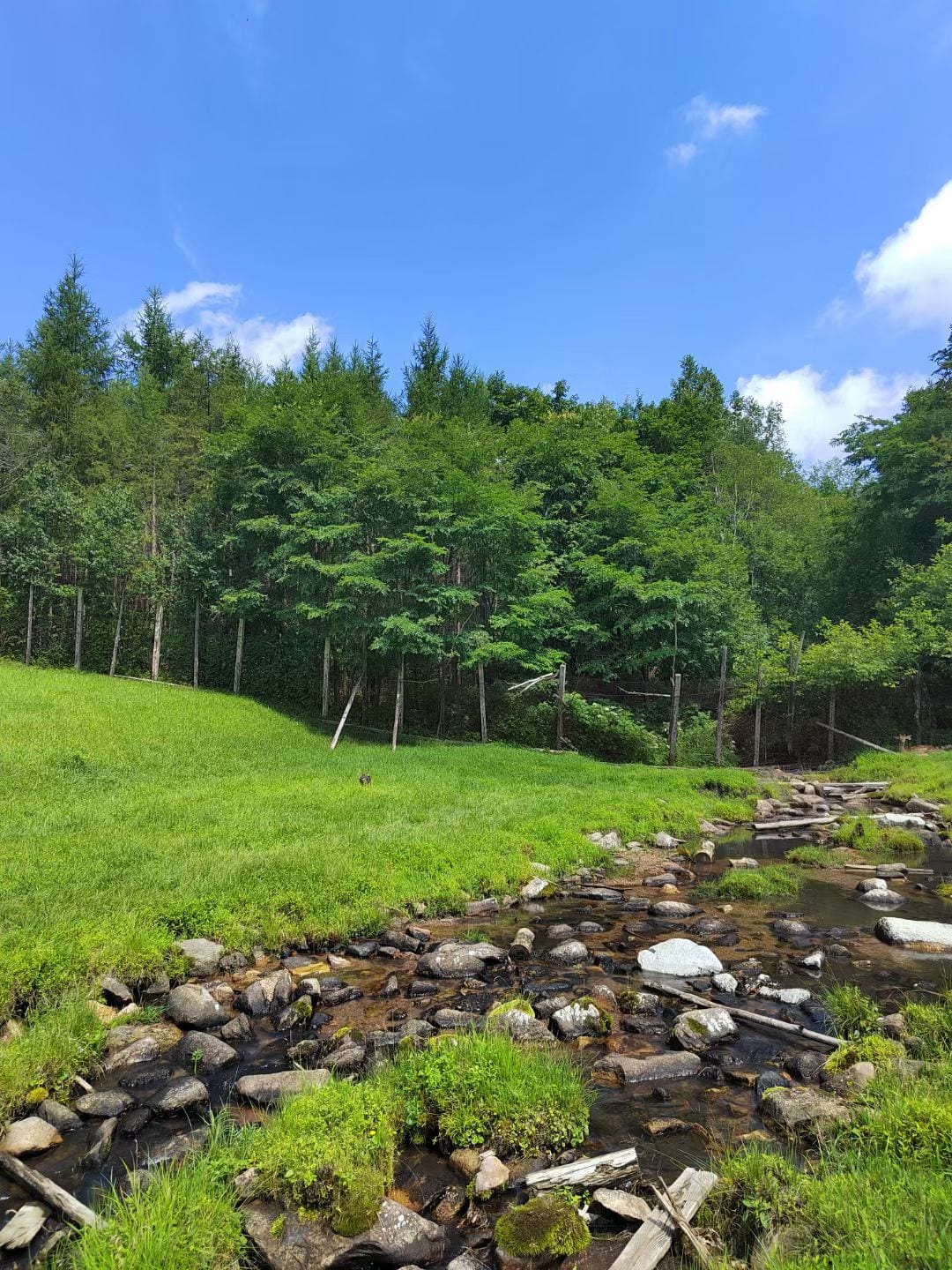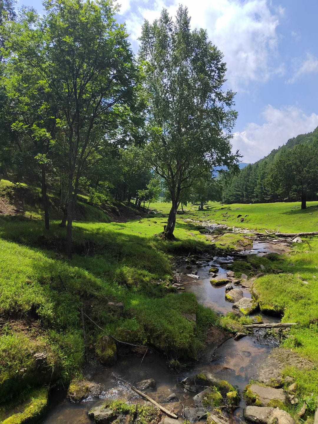 一进鹿苑景区, 北国的森林小溪配上蓝天白云, 那画面真的把我美化了。
