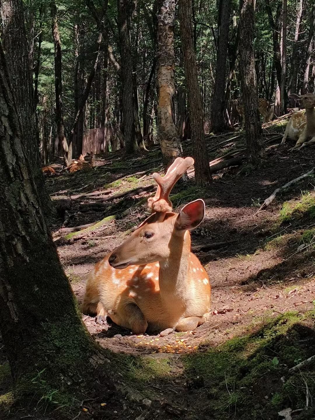 关于旅游, 大人可能对美景和人文景点感兴趣, 小朋友出行其实更多喜欢玩水以及可以和动物互动的景点, 所以, 伊春的第二站就去了飞鹤金山鹿苑, 让小朋友可以喂野生的梅花鹿。
