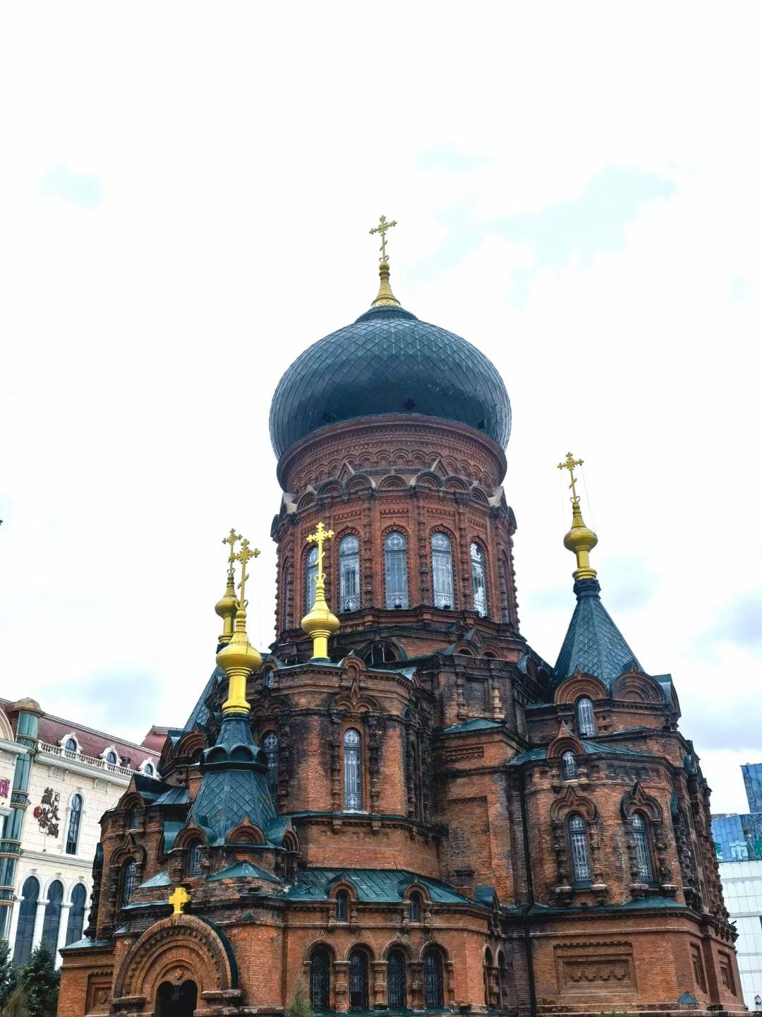 下午打卡网红景点 “圣·索菲亚教堂”, 教堂修建于 1907 年, 是中国最大的东正教教堂。 在很远处, 就能看见它的绿色穹窿被托举的极高, 给人一种升腾的美感。