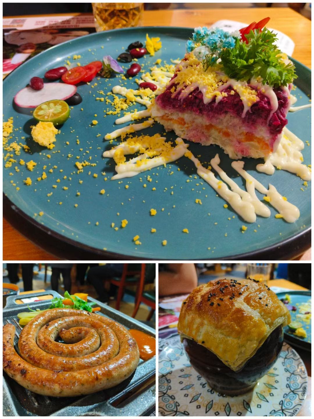 俄罗斯罐牛肉、 大盘肠的味道都做的不错。