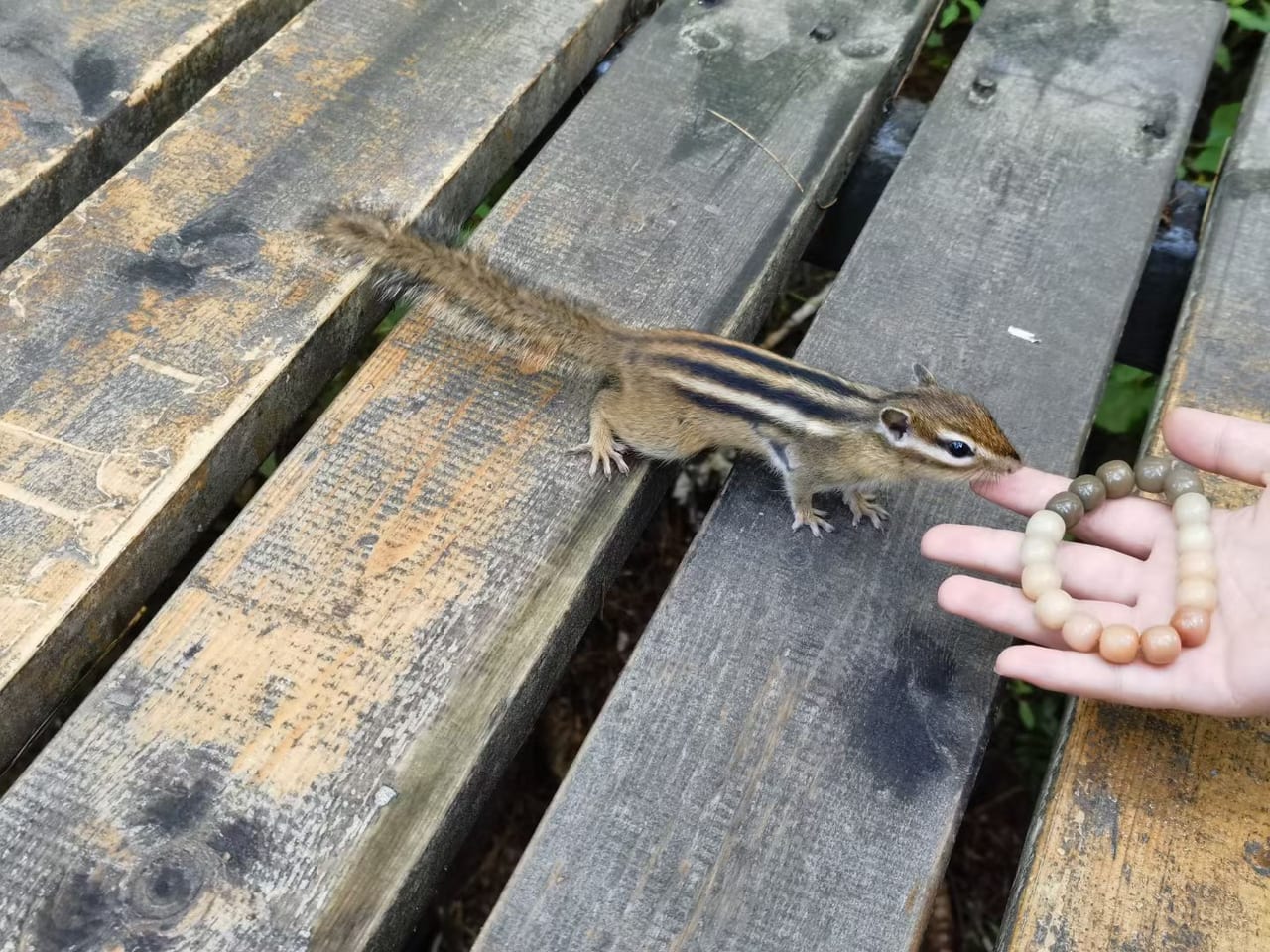 游完金山鹿苑, 下午可以伊春市东北边的五营国家森林公园, 这个公园最有趣的就是会看到很多贪吃的小松鼠, 只要带一包瓜子, 小松鼠就会从四面八方围过来要吃的。