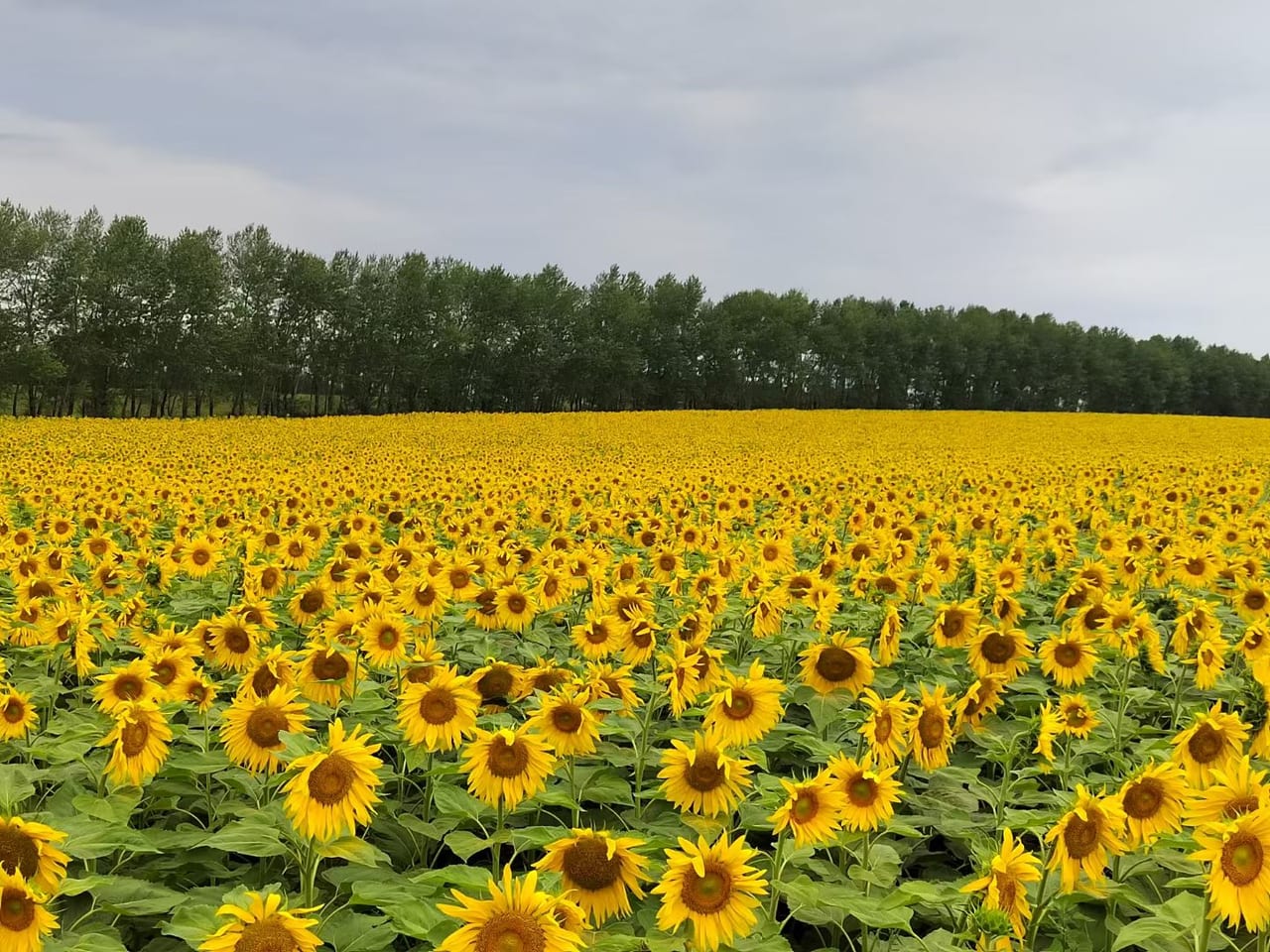 经过加格达奇前面的 332 国道, 偶遇一片一望无际的太阳花海, 站在观景台上, 看着海洋般的金色花海, 心中有点小小的激动, 也许这就是作物本身充满生机的力量吧。