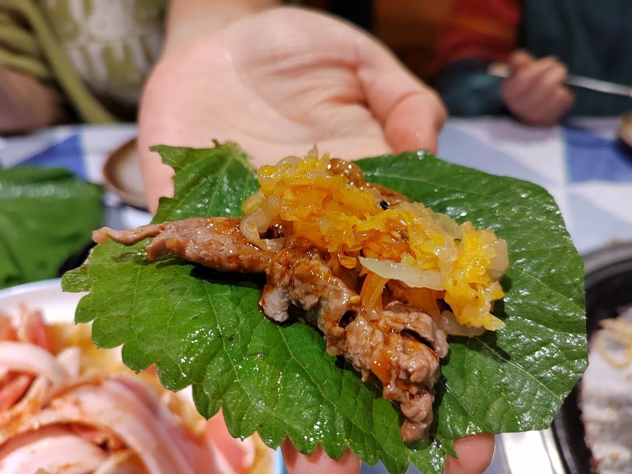 晚上找了一家根河市的烧烤店, 苏子叶包着烤肉一起吃, 有一种特殊的风味, 吃腻了烤肉再来点蓝莓干解腻, 最后吃一碗东北大冷面, 别提有多爽啊。