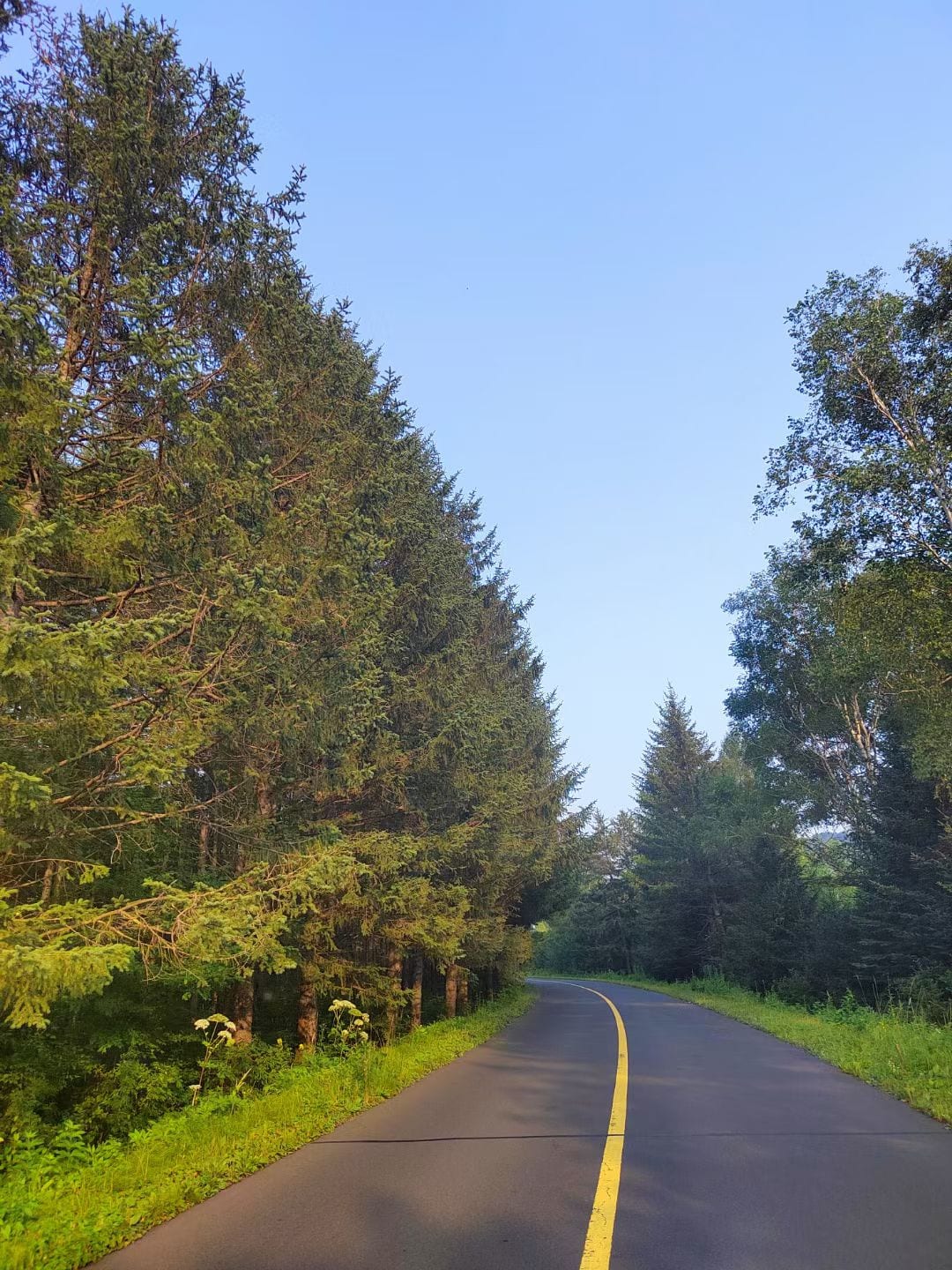 行驶在乌带公路途中, 可以看到大量红松和白桦等珍贵树种交织而成的原始森林, 宛如宫崎骏画中的森林小路, 清新而宁静。