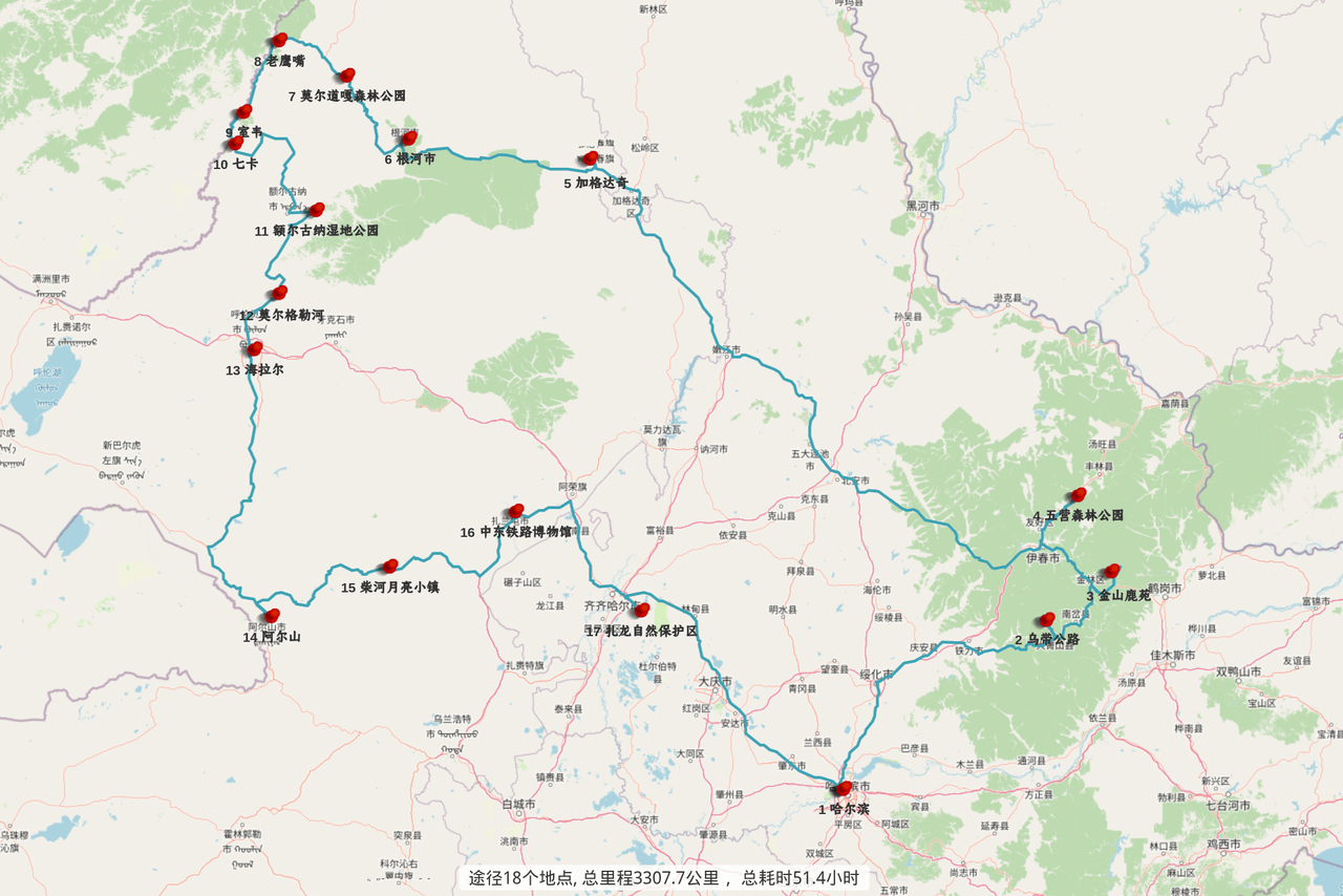 此次大兴安岭环线的节奏还是比较紧凑的, 用一句网络流行语, 我们这种是特种兵玩法, 看官们可以酌情增加一倍的游玩时间, 那样整体节奏会相对轻松一点。