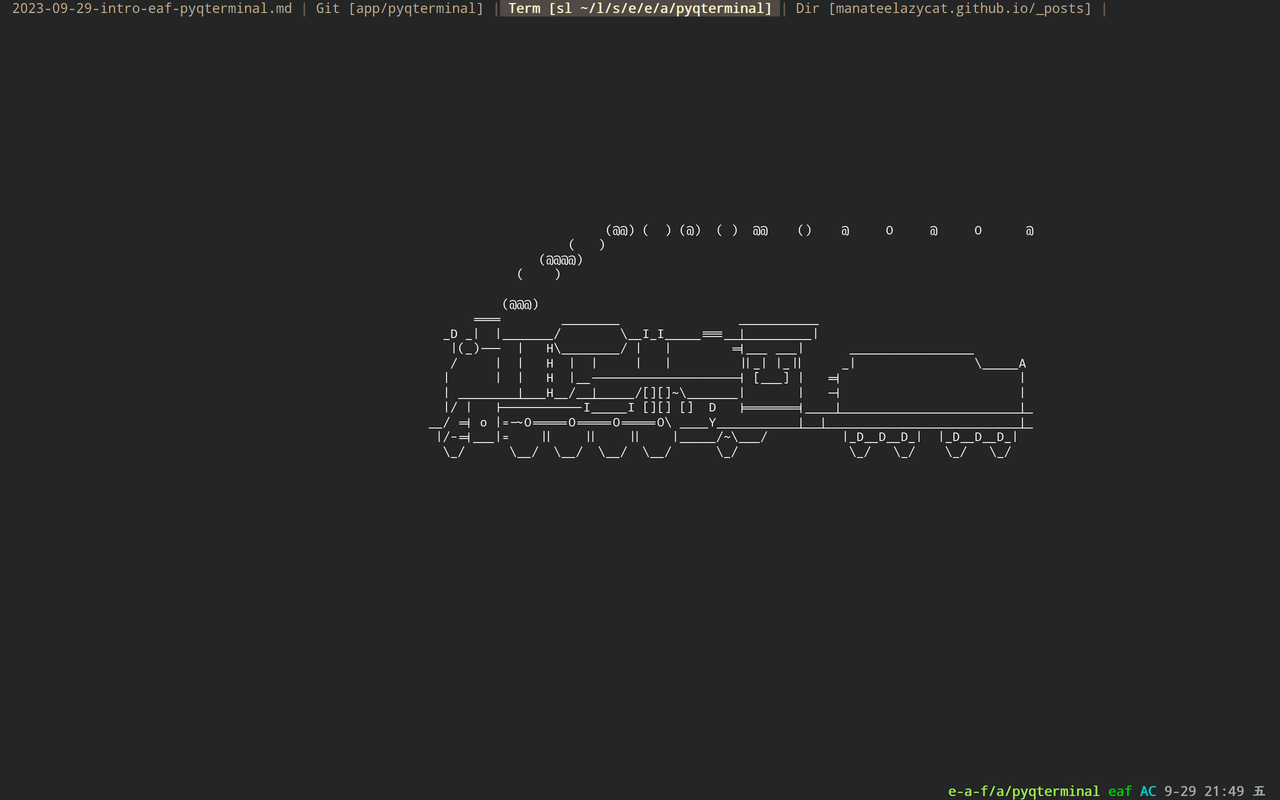 - 优异的运行性能: EAF PyQTerminal 内部用了大量多线程技术, 终端中运行再复杂的命令行程序都会卡住 Emacs 本身