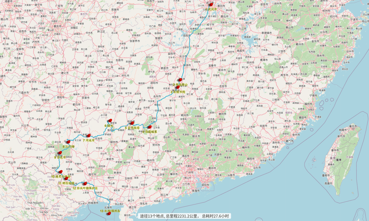 在地图上反复丈量着广西的山水, 最终选择了一条蜿蜒向西的路线, 从武汉出发, 经桂林, 穿越山峦叠嶂的融水、 河池, 一路向南直抵碧波万顷的北海。