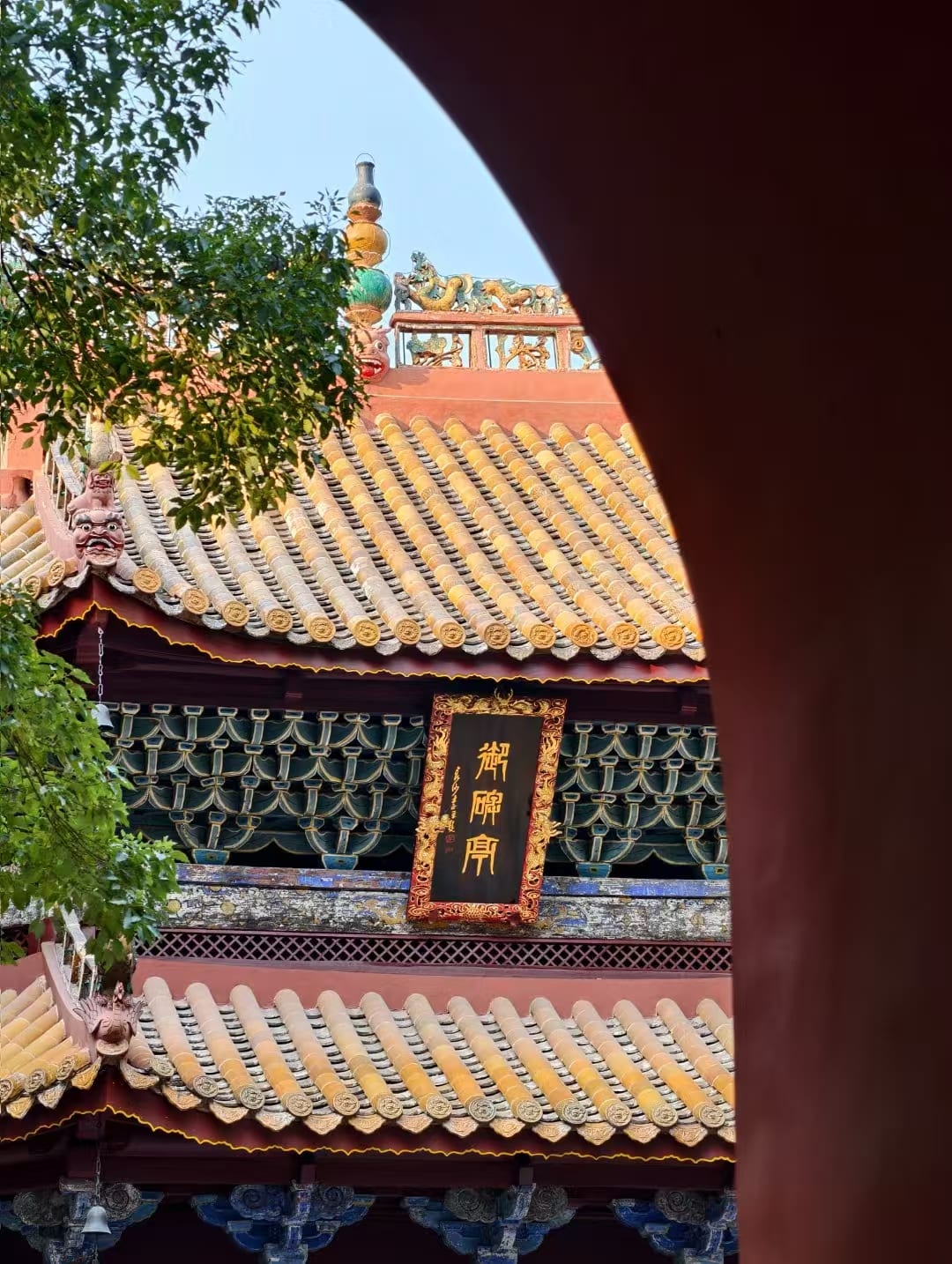 第一天在衡阳南岳大庙附近住, 南岳大庙这座始建于隋代的古刹, 历经千年风雨依旧巍然。 踏入庙门的刹那, 古朴庄严的气息扑面而来。 夕阳斜照, 碑帖上斑驳的字迹愈发深远, 千年古树在暮色中婆娑摇曳, 偶有风铃声随风飘来, 静谧悠远。