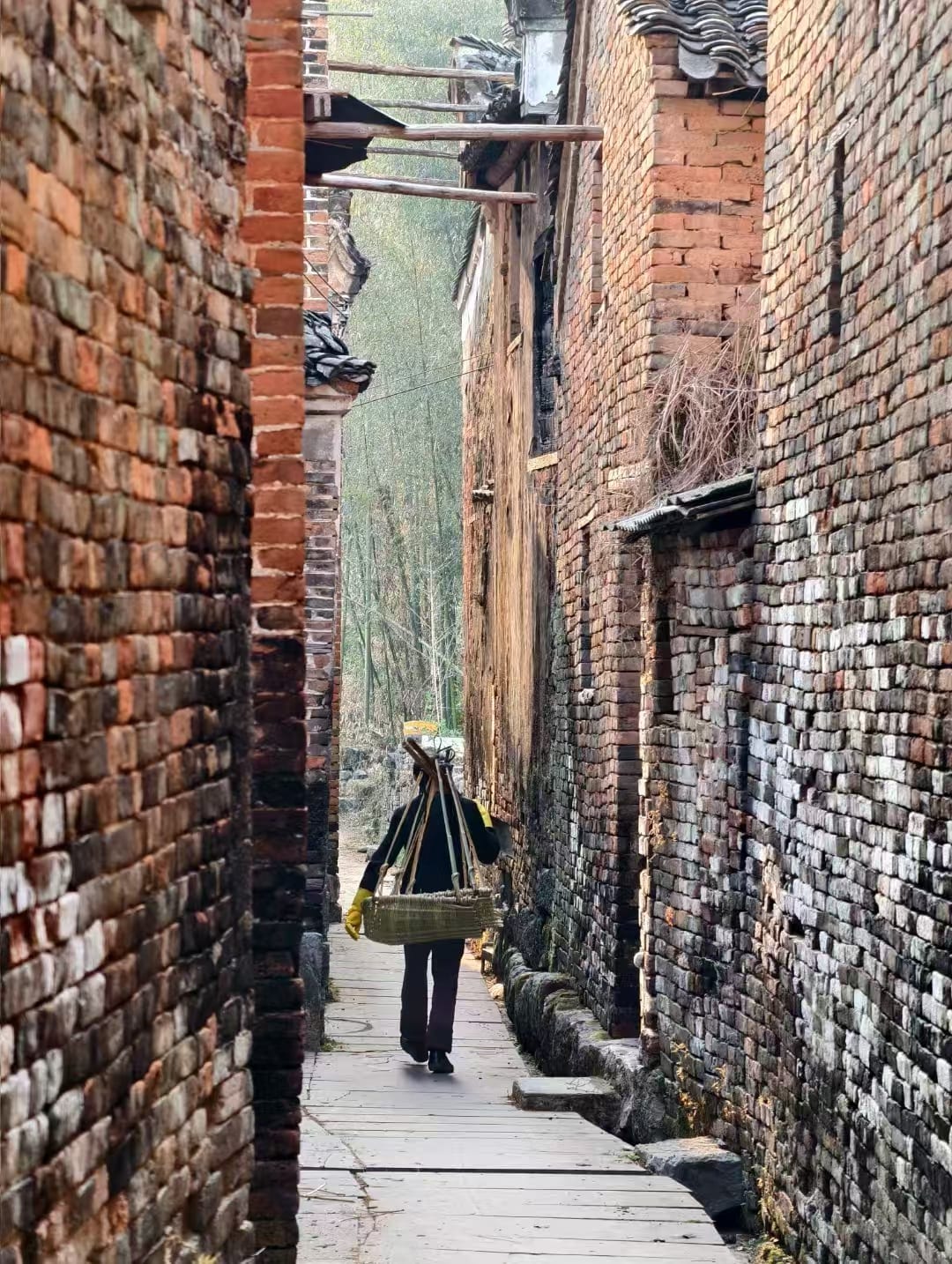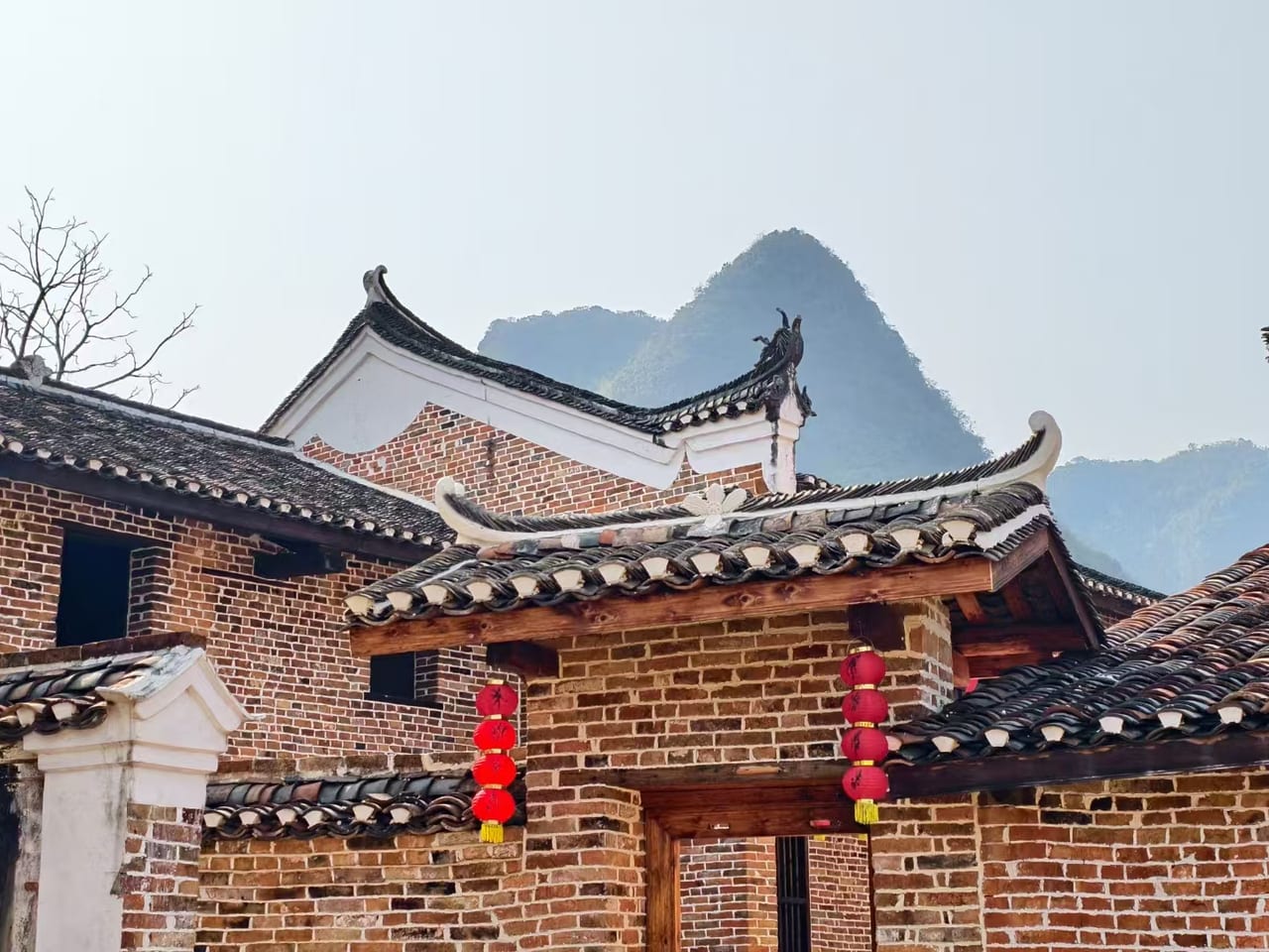 第二天早上起来, 可以去勾蓝瑶寨逛逛, 晨雾轻笼着古村, 红砖黛瓦在水中倒映, 恍若一幅水墨丹青。 石板小径蜿蜒向前, 红灯笼喜庆地高高挂起, 还有那屋顶上的火辣辣的红辣椒, 向游人诉说着勾蓝瑶族的千年故事。
