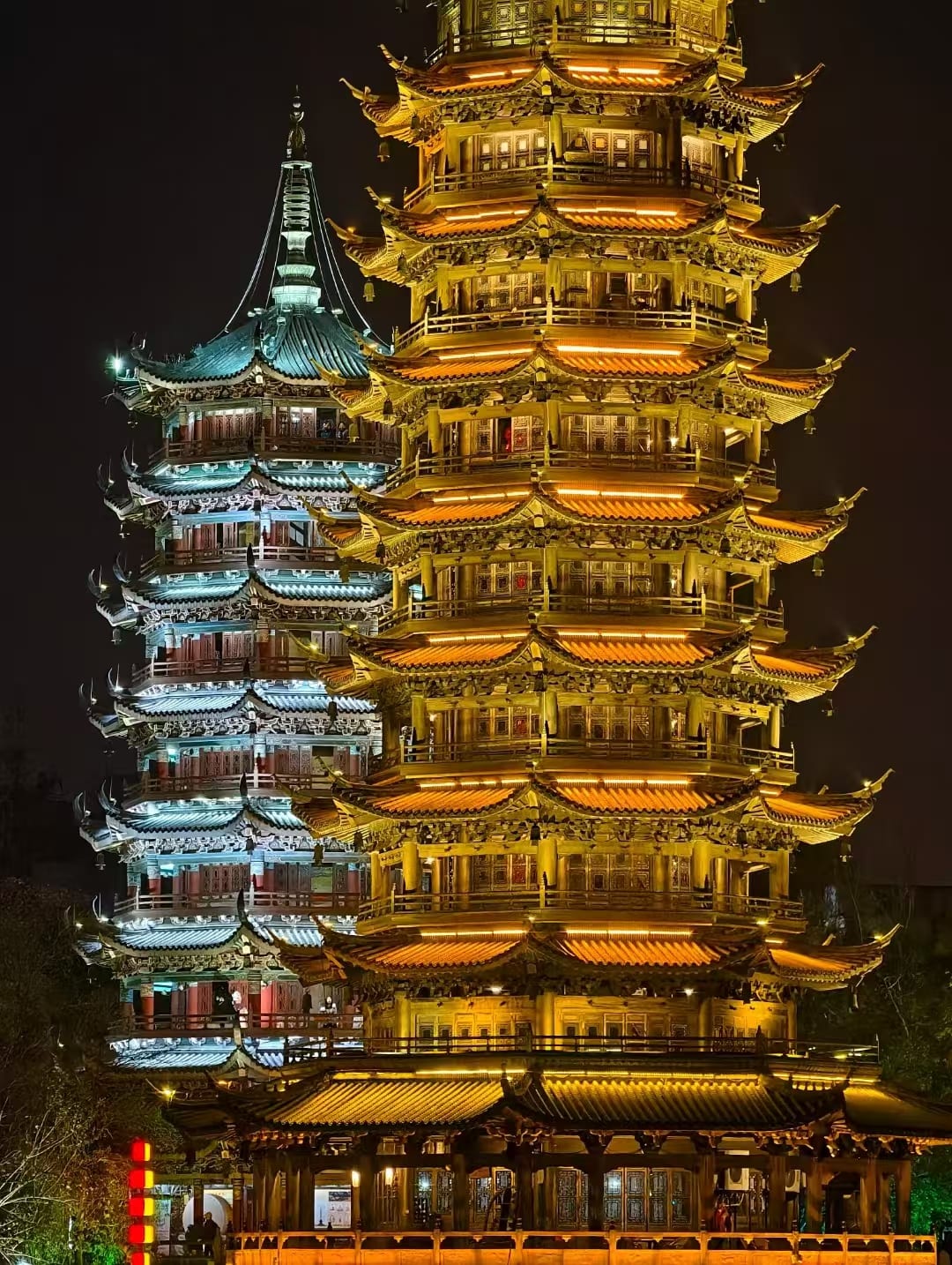江永后, 路过桂林, 建议住在日月双塔附近。