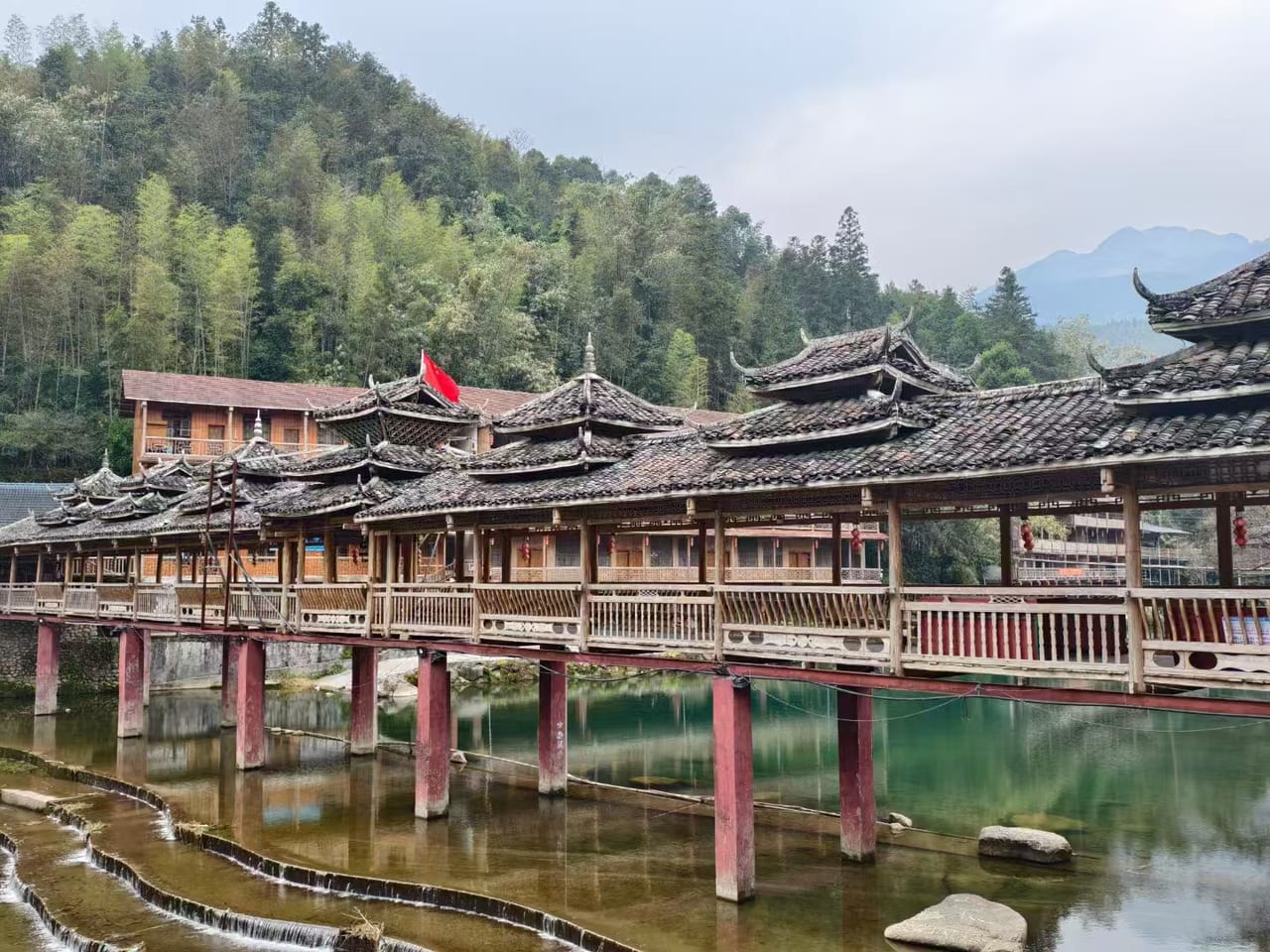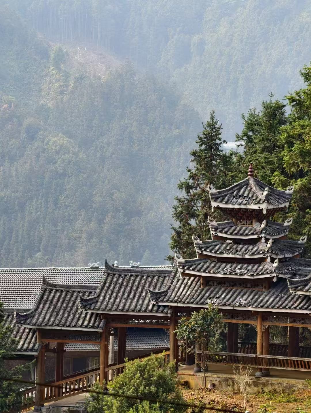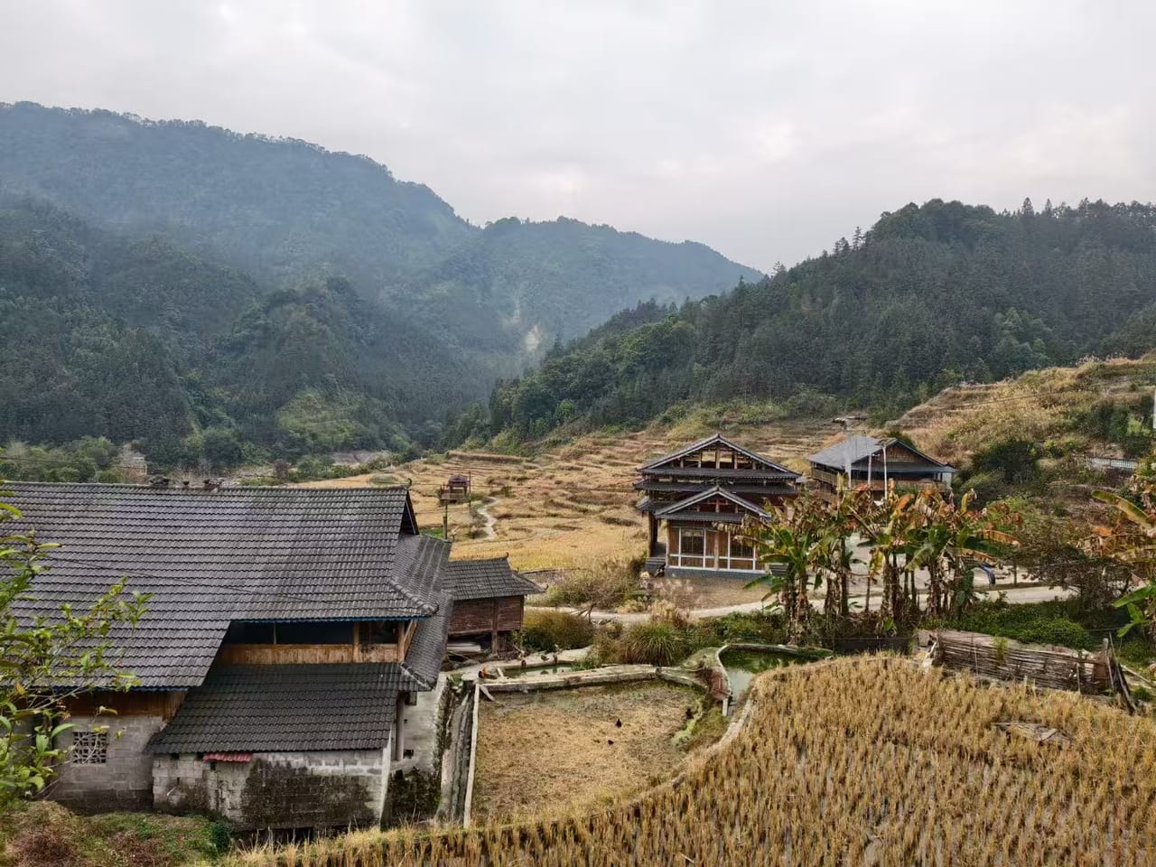 融水归报这里有很多侗族建筑, 空气里裹着青草和泥土的芬芳, 让我想起小时候在乡下的日子。 梯田层层叠叠地爬上山腰, 虽然冬日里略显萧索, 但我能想象夏天里, 那片片绿浪随风起伏的模样。