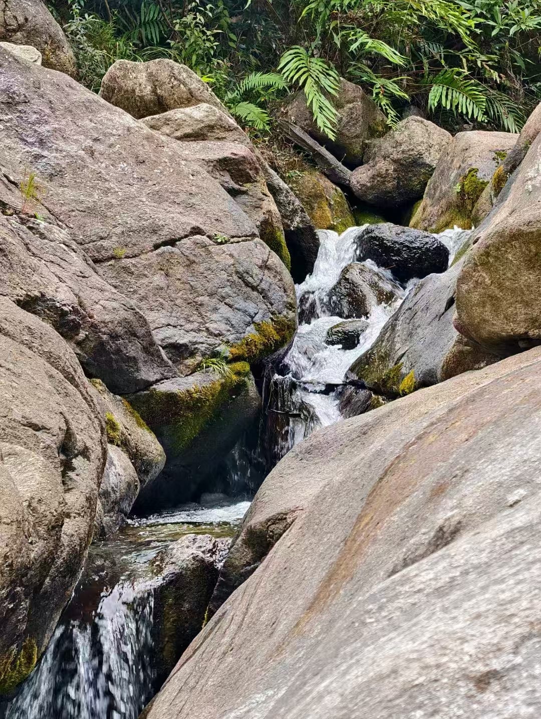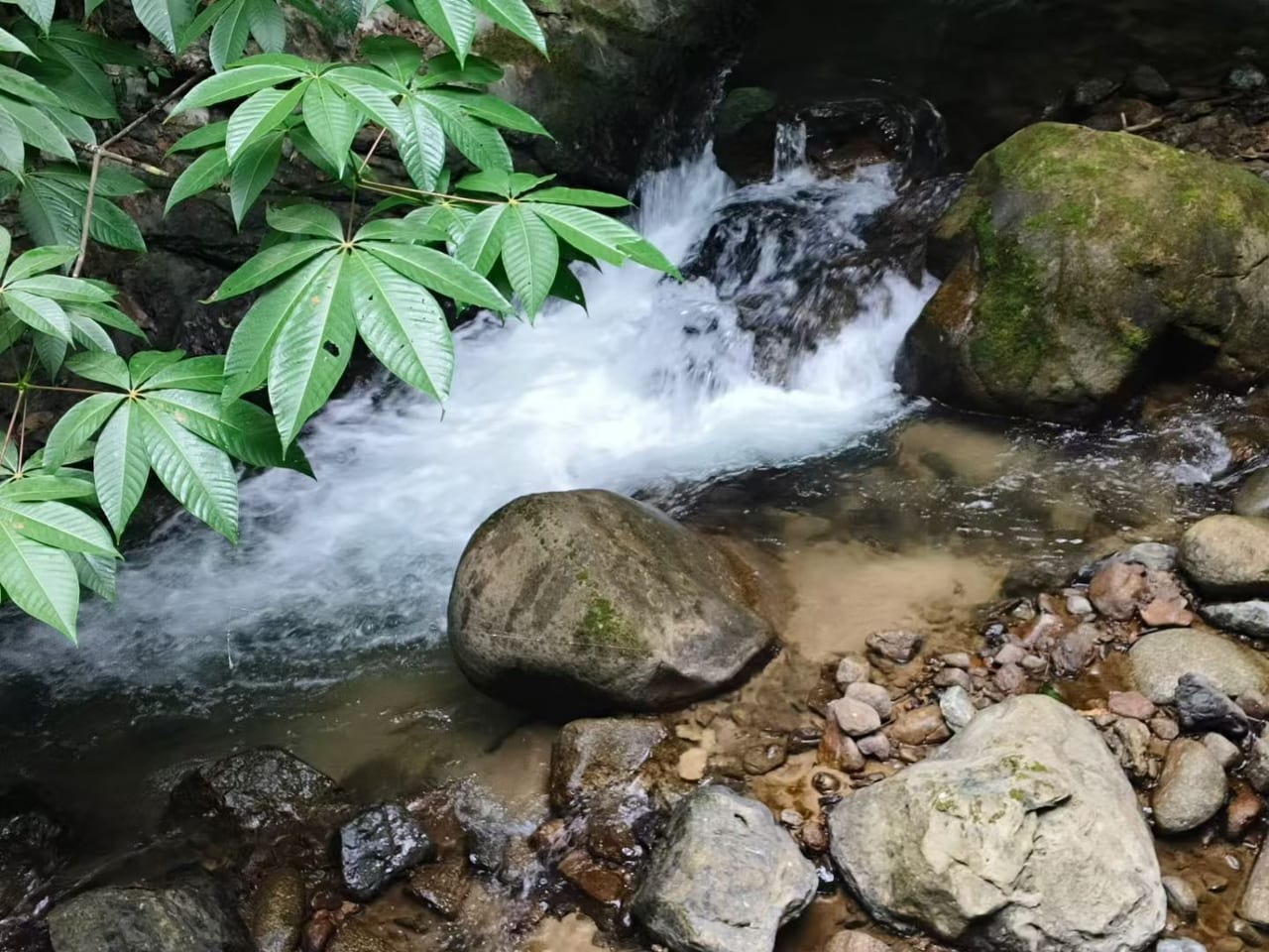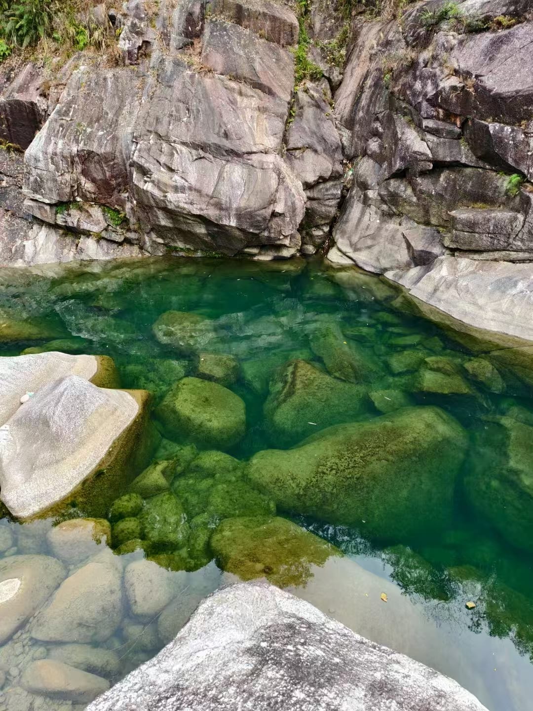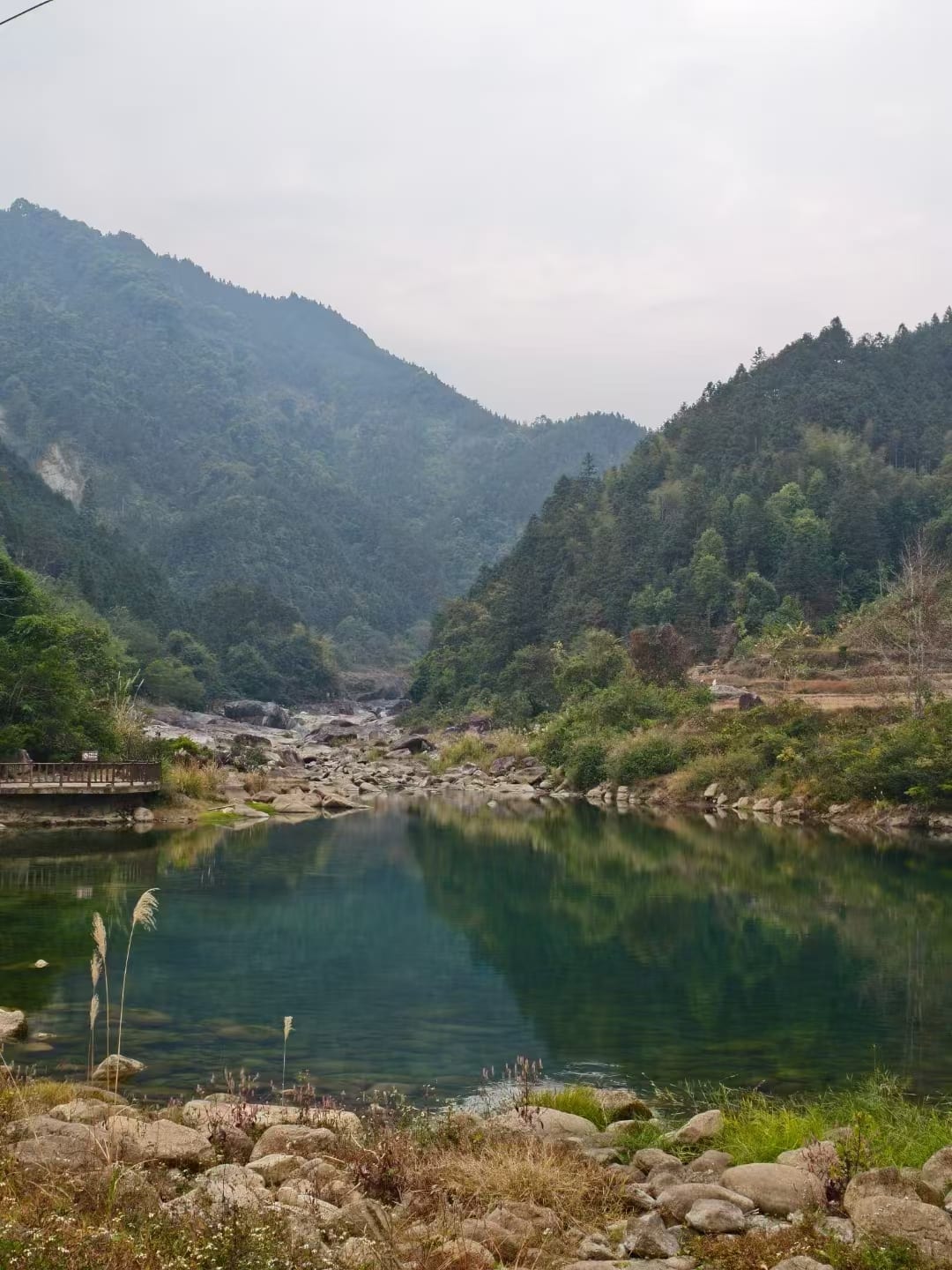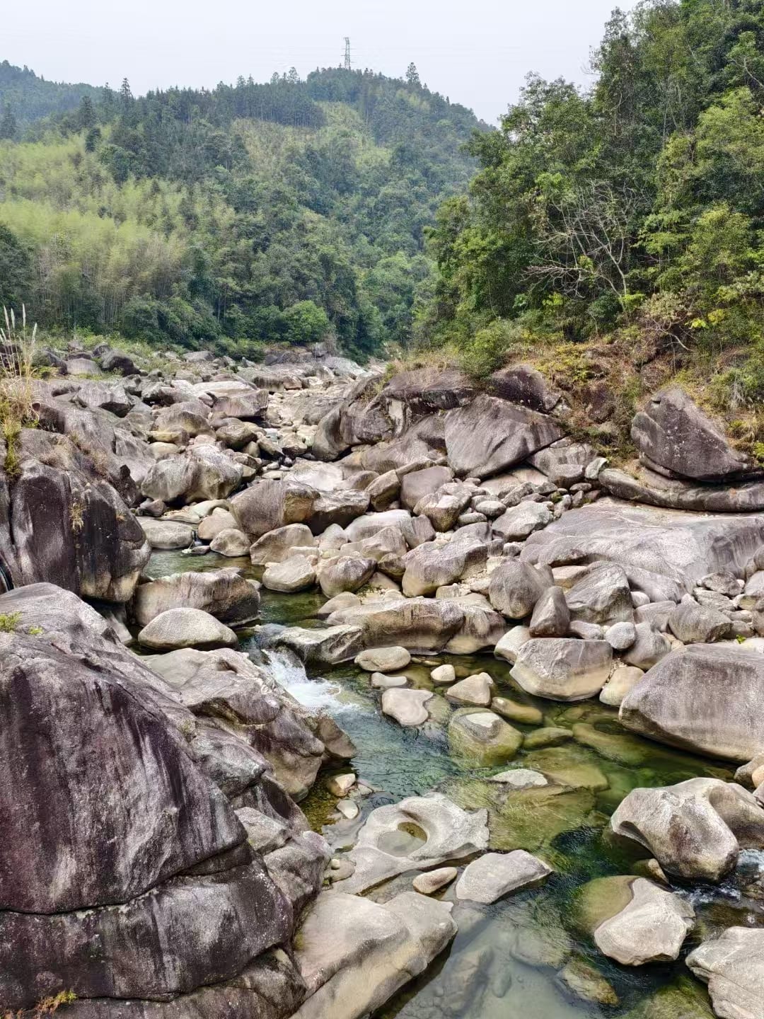 踩在温润的河石上, 小朋友在乱石中蹦蹦跳跳, 时不时激起几朵水花, 快乐伴着碧绿的溪水淌过山谷, 流向远处的山涧。