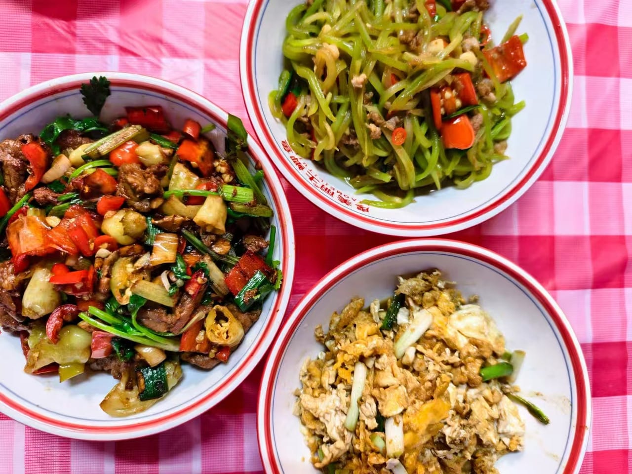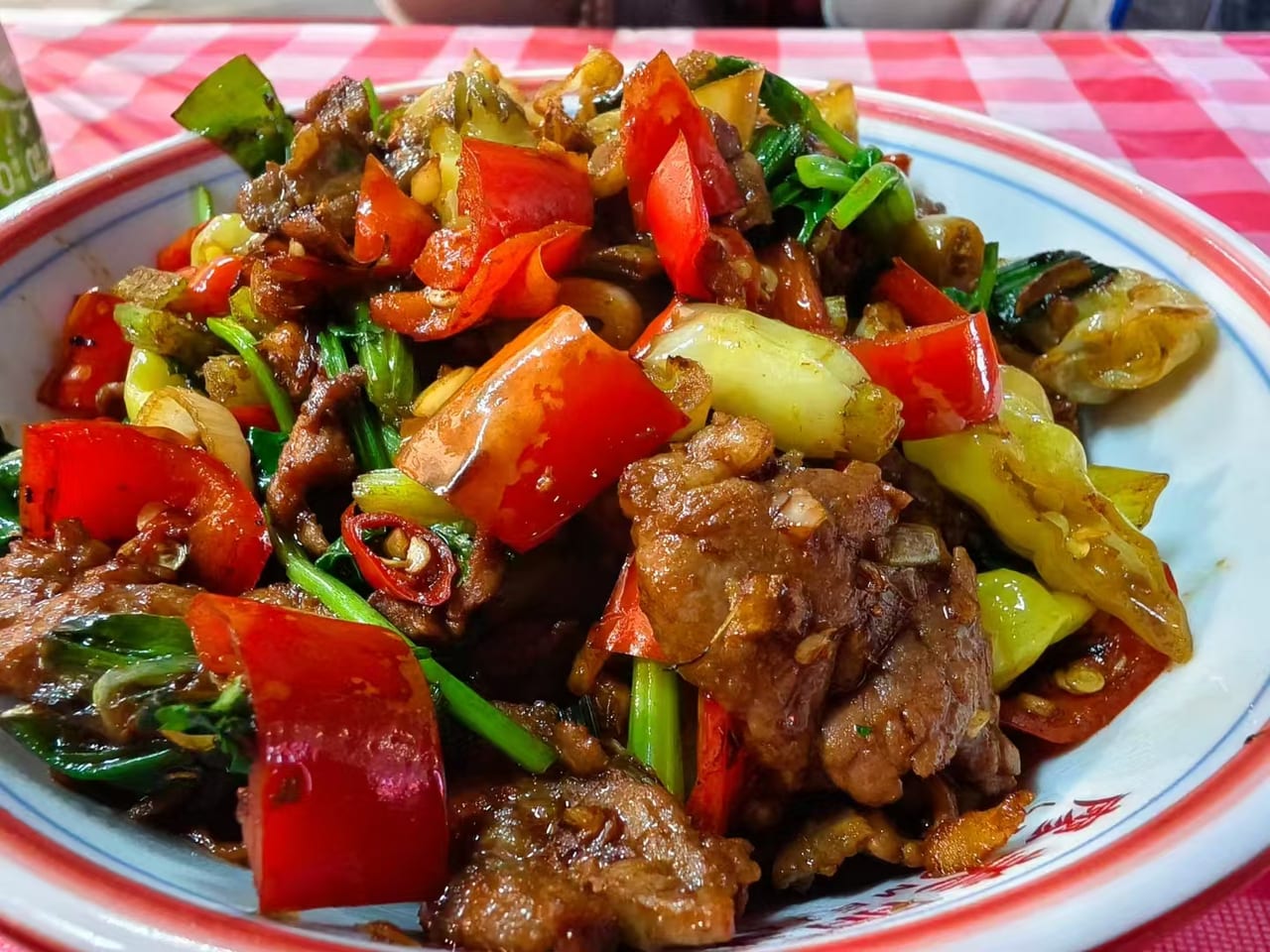 玩了一天, 在河池市住下, 略过了网上推荐的果酱烧烤, 线下找了人最多的一家饭馆, 他们家的醋炒鸡蛋很美味, 醋的酸香与鸡蛋的鲜香相得益彰, 口感既有层次又不失润泽。