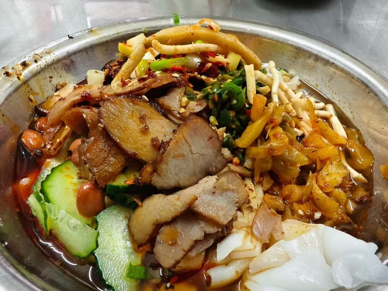 第二天的这家郑家米粉店的凉拌粉味道也很有特色, 味道微甜, 有点像老家的凉拌米皮的味道。